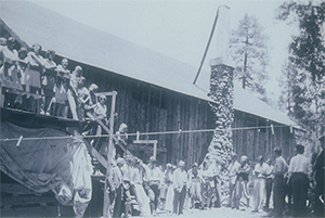 Throughout the winter, people from Tucson and Phoenix combined their efforts to gather supplies and make plans for the completion of the Lodge in preparation for the official opening of the camp program on the site Montlure sits on today. The volunteer builders returned in March, 1931. Since Highway 60 had not yet been completed, the party and its load of supplies traveled to McNary over the one-way road through White River to reach Montlure. These determined founders worked tirelessly to finish the Lodge, and on June 21, 1931 the first summer conference was held in the new facility in Greer.